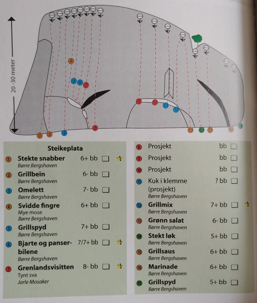OPPDATERING SOMMER 2022: felter er lagt ut på 27crags. Trengs mer arbeid.