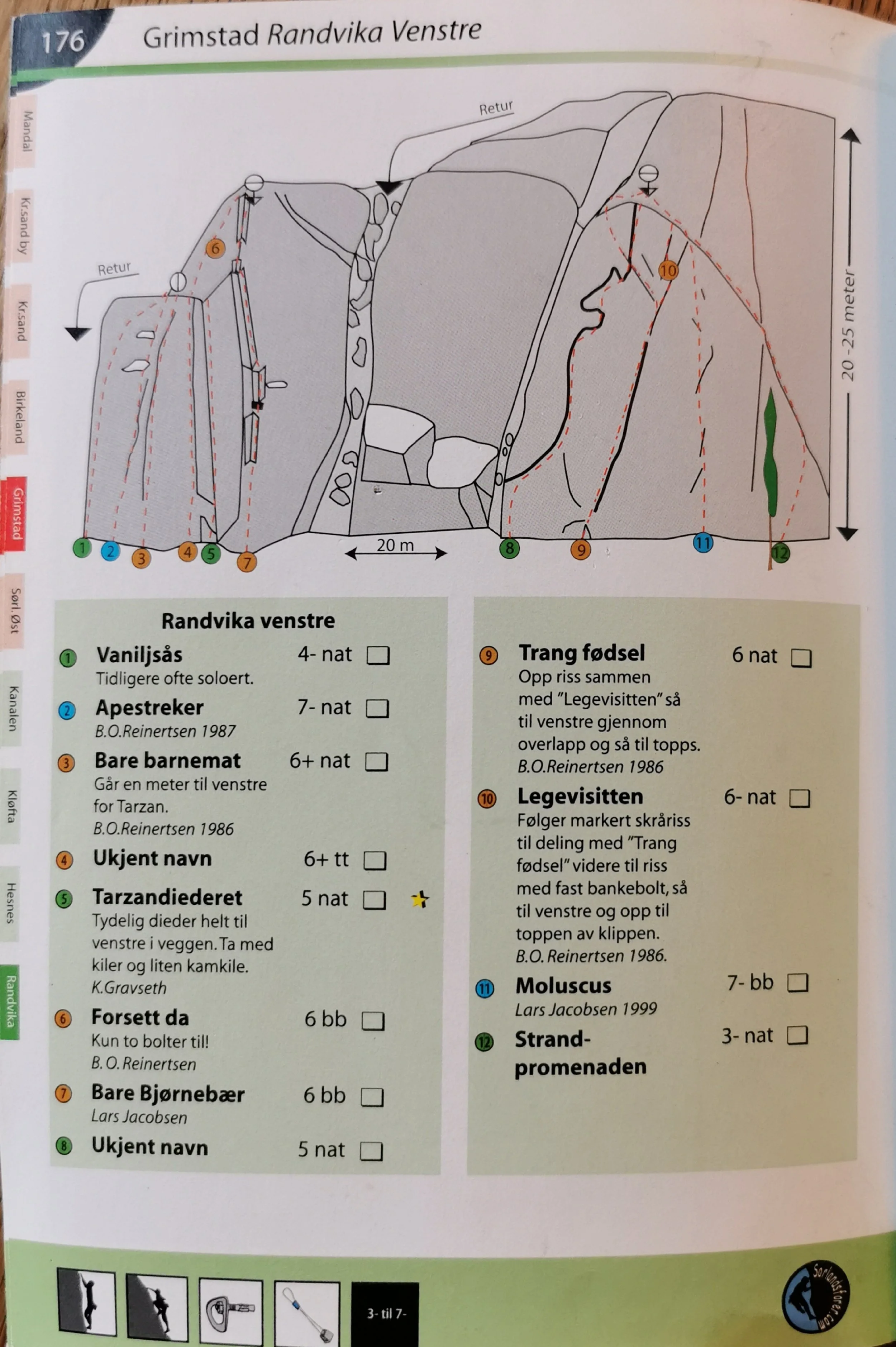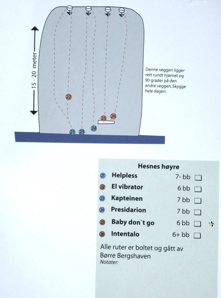 Cragget ligger nå på 27crags, og topo er oppdatert for alle ruter.